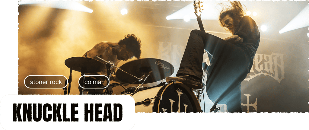 Knuckle Head passe à la vitesse supérieure. Toujours aussi indomptables, toujours aussi viscéraux, Jack et Jock repoussent encore les limites de leur univers musical. Un pied dans la poussière de la dark country, l’autre dans l’abîme du stoner, ils façonnent un rock brut, chargé d’huile de moteur, de fuzz saturée et d’échos psychédéliques synthwave. Une signature sonore unique, entre road trip halluciné et déferlante sauvage.